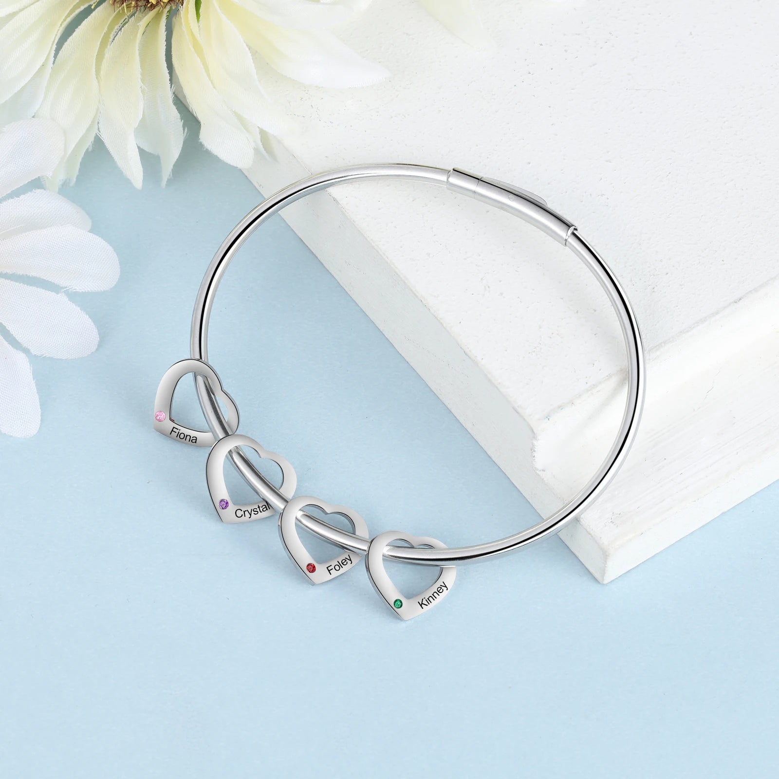 Pulsera con abalorio de corazón y nombre grabado personalizado con incrustaciones de 2-6 piedra natal