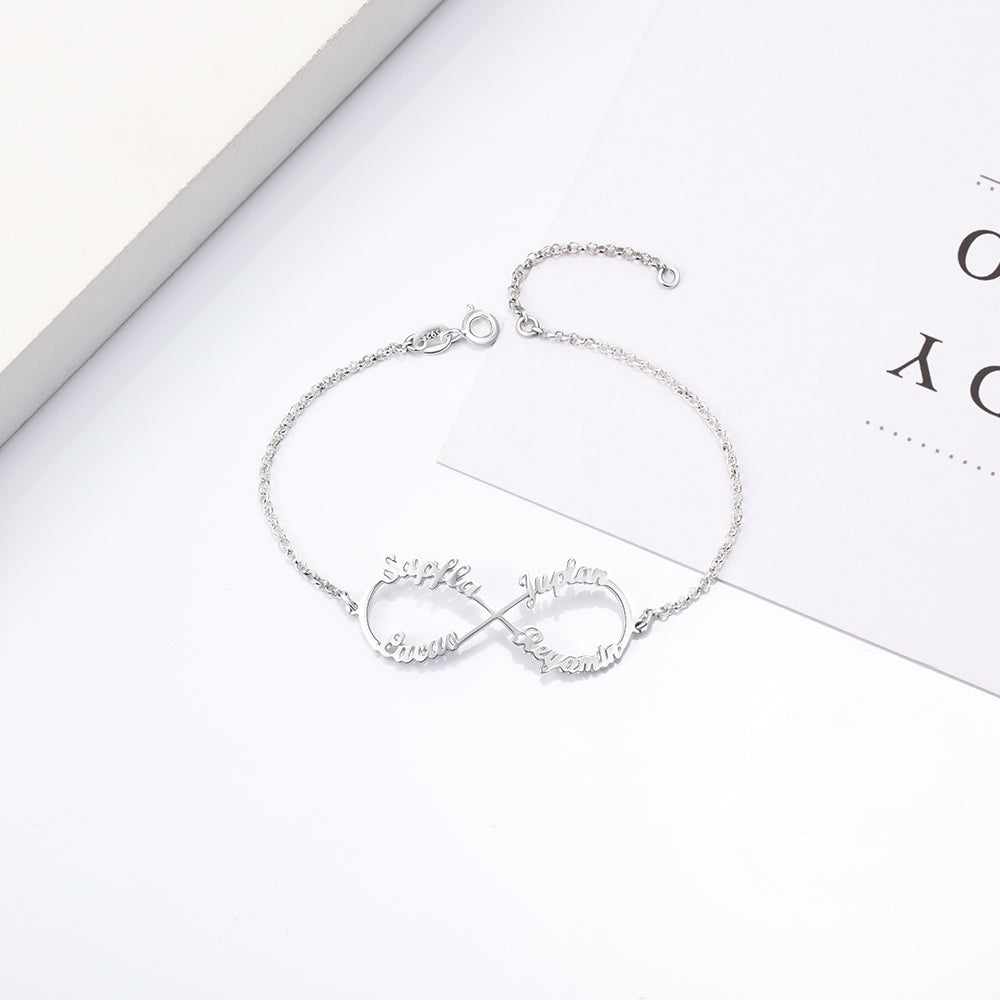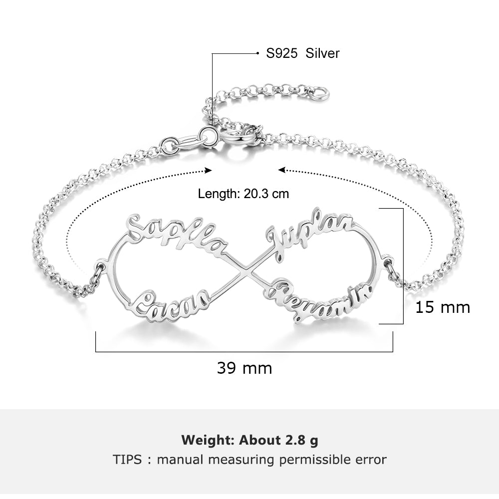 Pulseras de plata de ley 925 personalizadas con nombre infinito para mujer