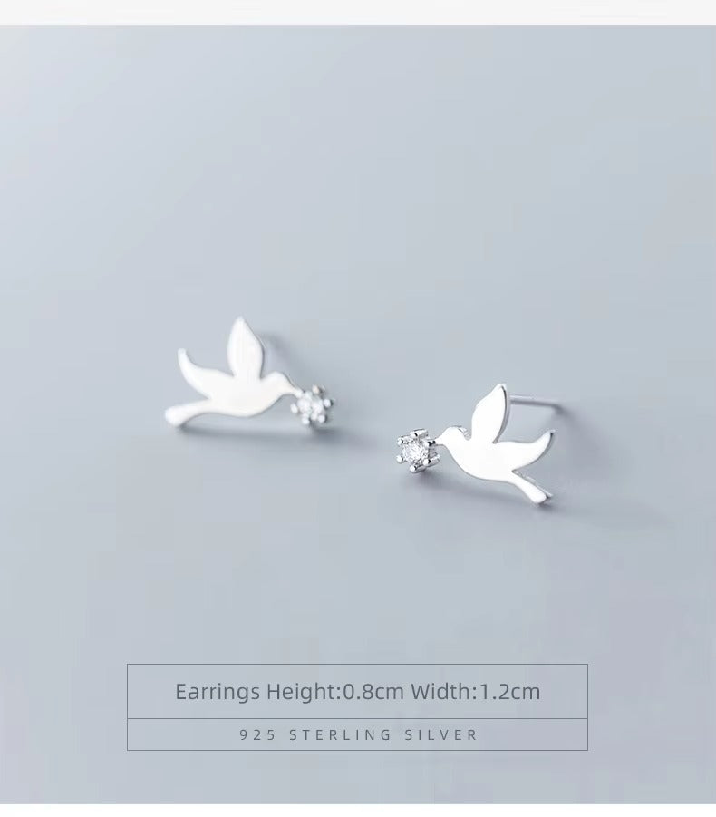pendientes de tuerca con diseño de pájaros para mujer, aretes de Plata de Ley 925