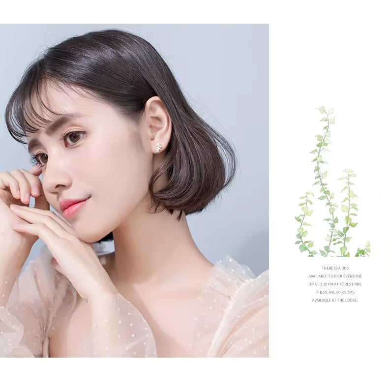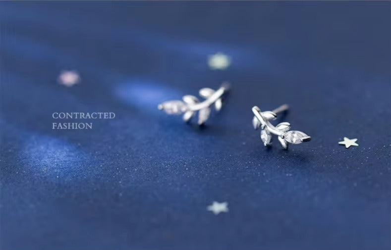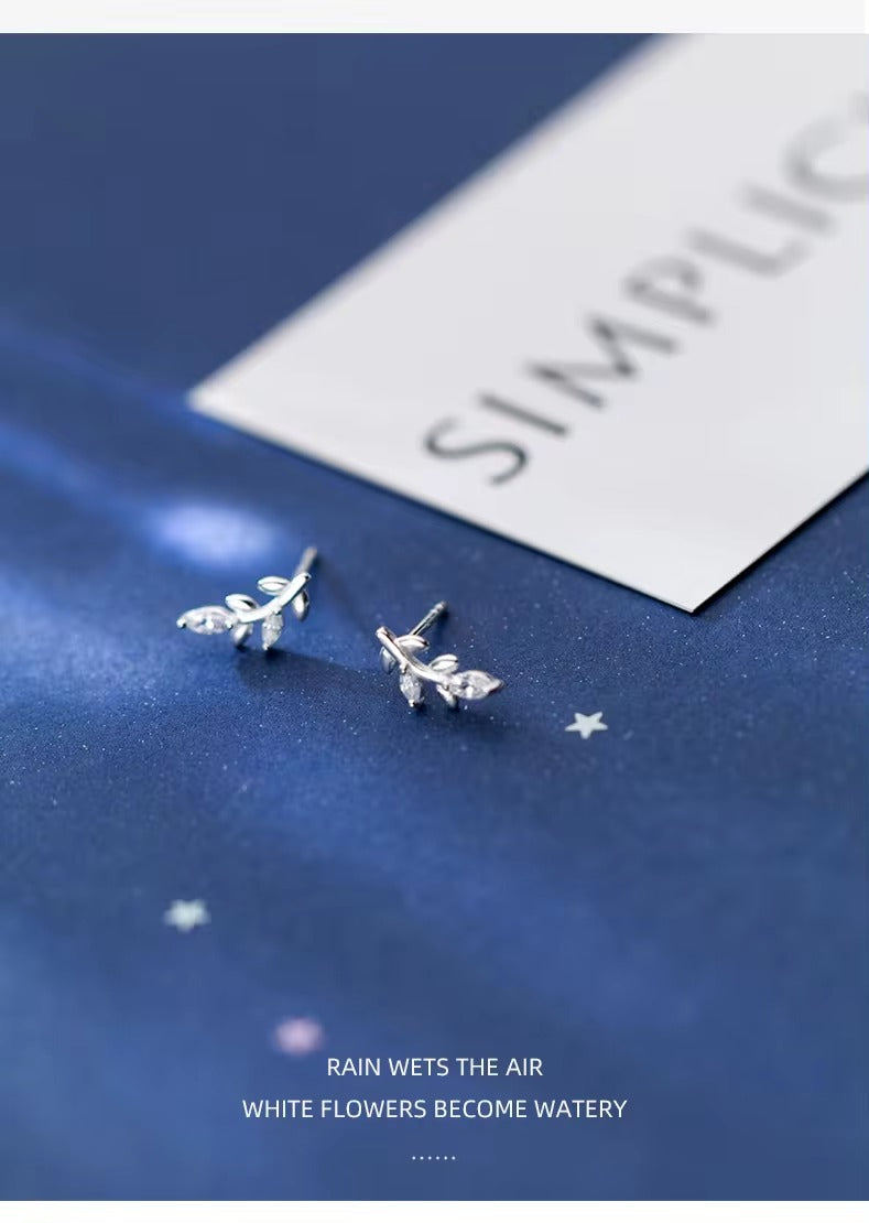 pendientes de tuerca de árbol de hojas pequeñas y lindas para mujer