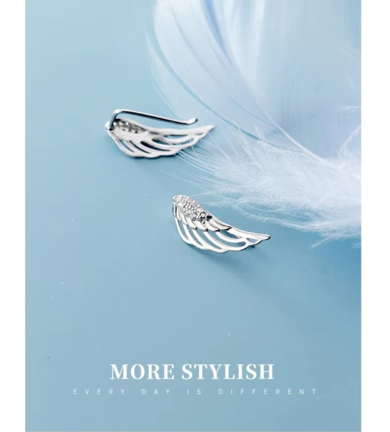 pendientes de tuerca de plumas para mujer, de Plata de Ley 925 auténtica, alas de Ángel