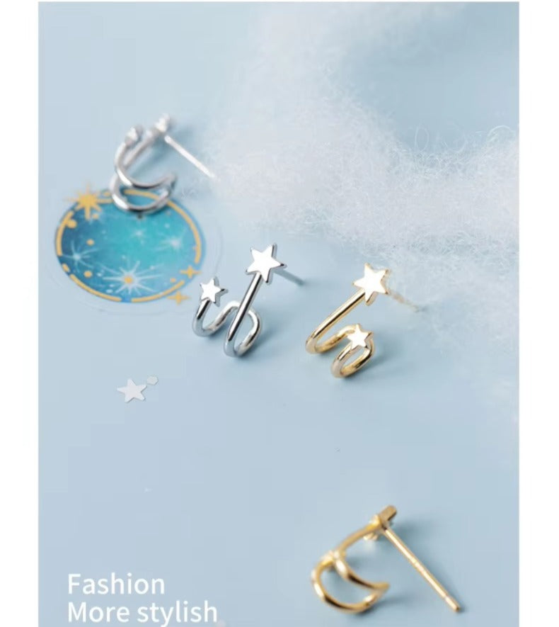 pendientes de tuerca geométricos minimalistas para mujer, de doble capa