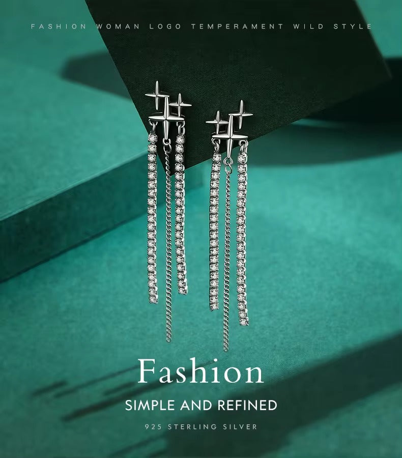 pendientes largos de gota con borlas para mujer, de Plata de Ley 925 auténtica