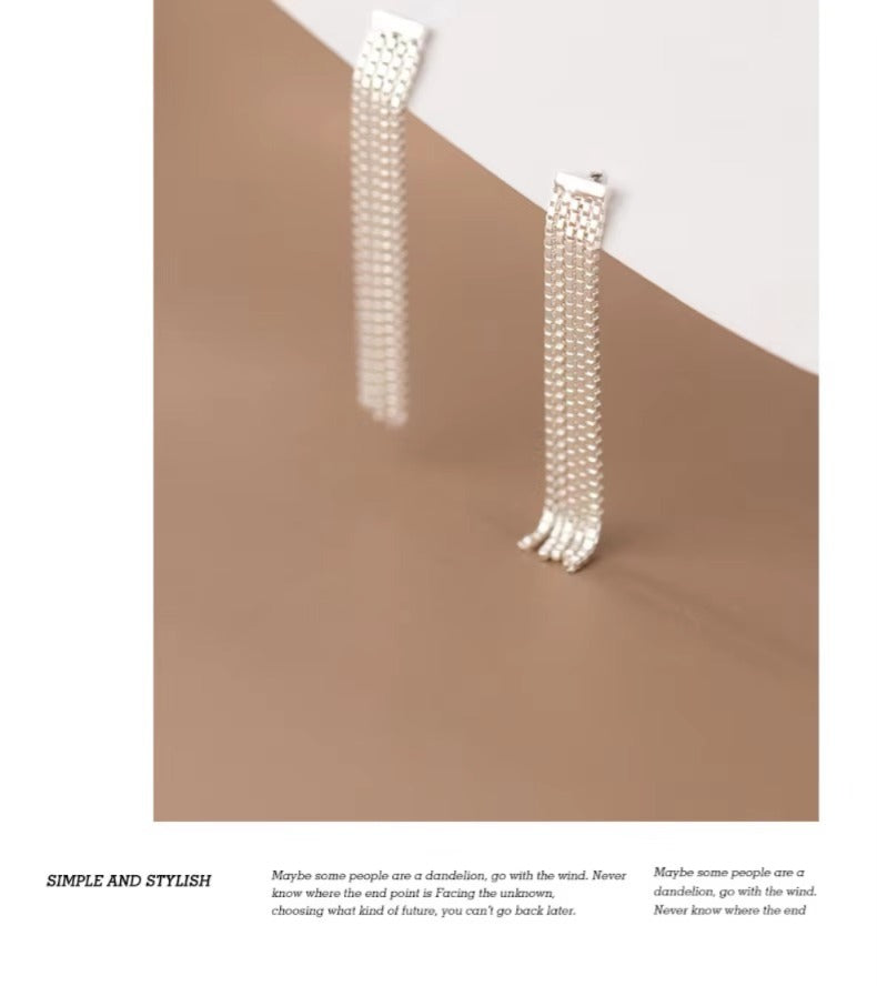 pendientes largos de Plata de Ley 925 con borla para mujer