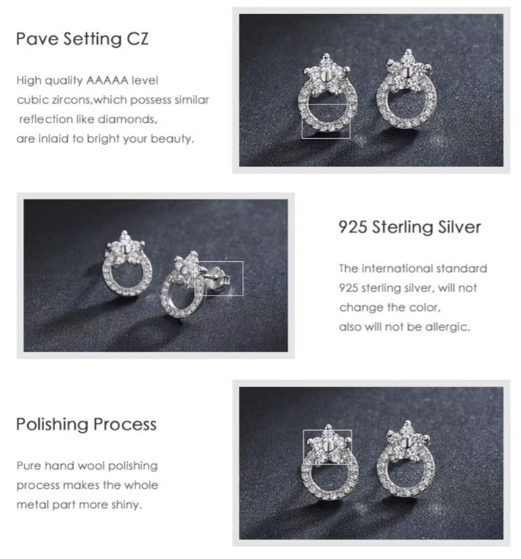 pendientes redondos de Plata de Ley 925 para mujer, joyería fina con diseño de planta y flor