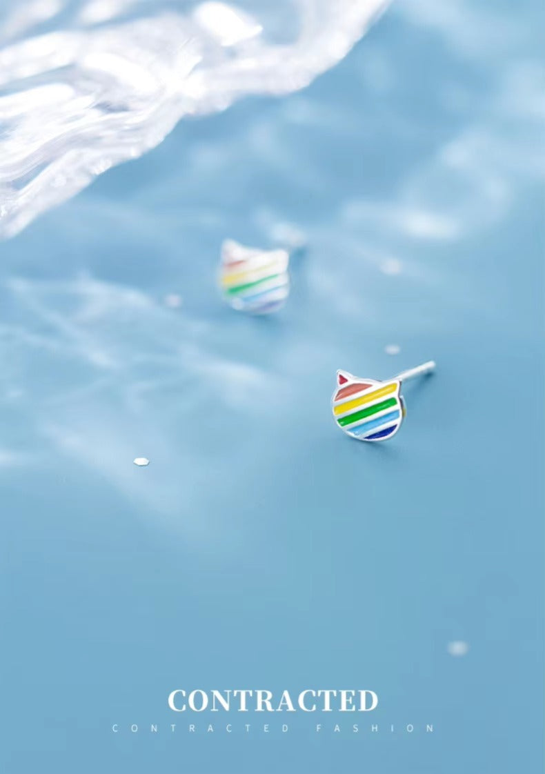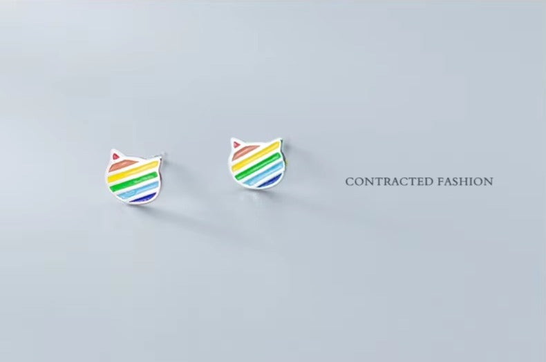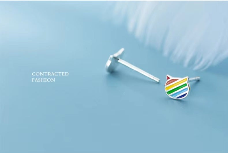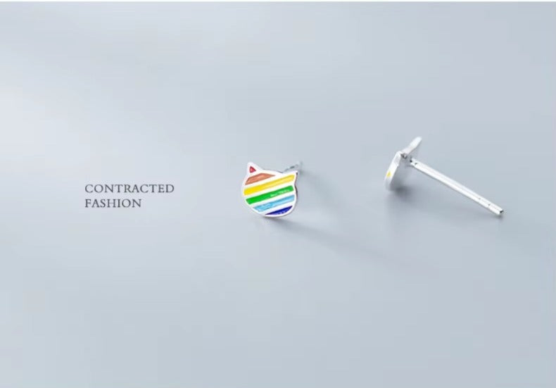 Pin de Plata de Ley 925 con forma de gato para mujer, alfiler para las orejas