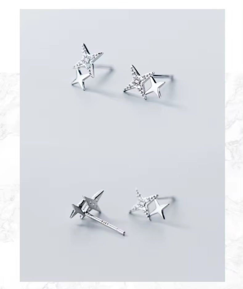 ujo claro CZ estrellas brillantes lindo galaxia Stud pendientes moda femenina Real 925 joyería de plata de ley para regalo de las mujeres