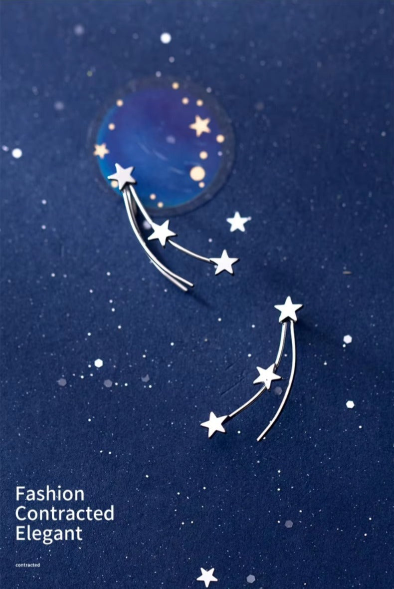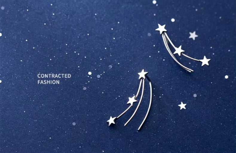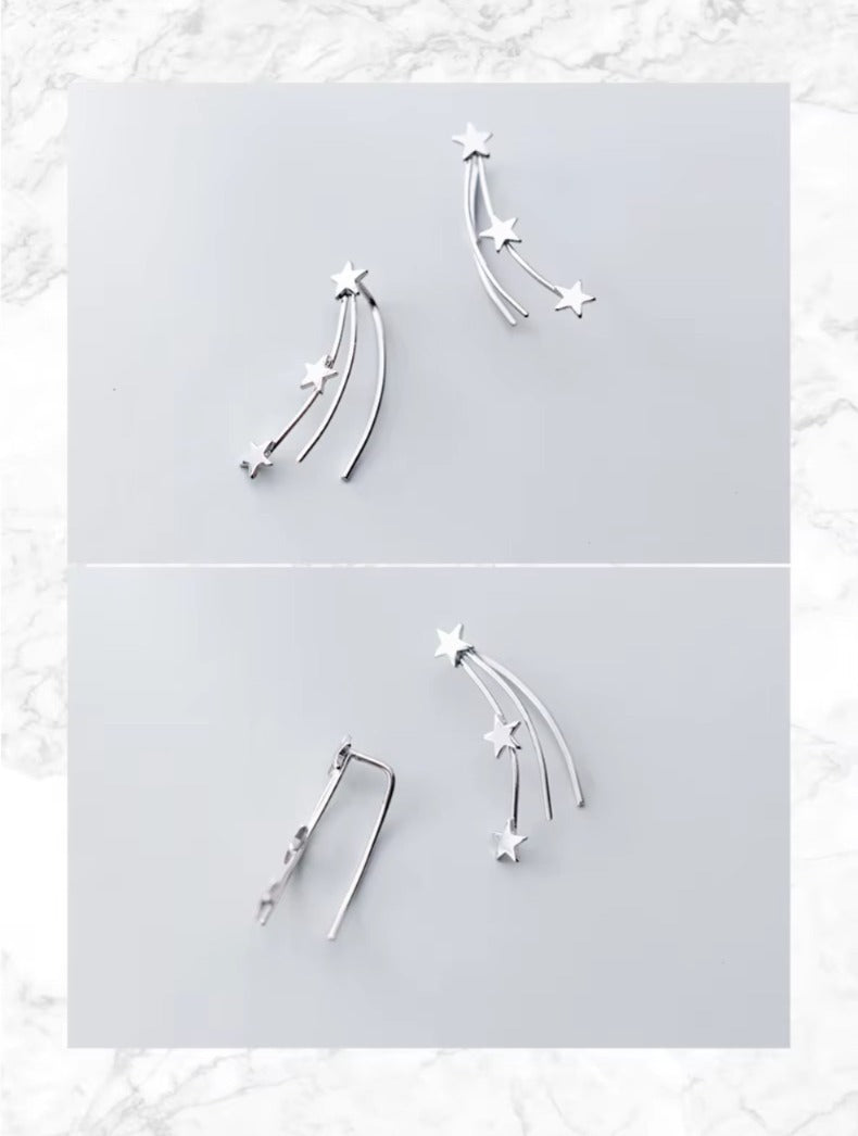Venta caliente Real 925 Plata de Ley estrellas línea moda pendientes encanto Simple para mujeres