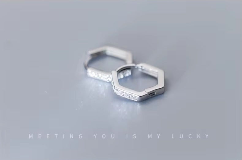 pendientes de aro con forma hexagonal para mujer, de Plata de Ley 925, CZ transparente