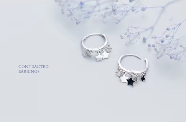 pendientes de aro de plata de ley 2021 auténtica para mujer, aretes redondos con abalorio de columpio de estrellas