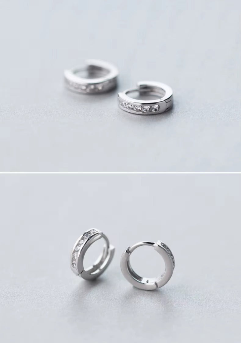 pendientes de aro de Plata de Ley 925 auténtica para mujer, aretes redondos de circonita transparente