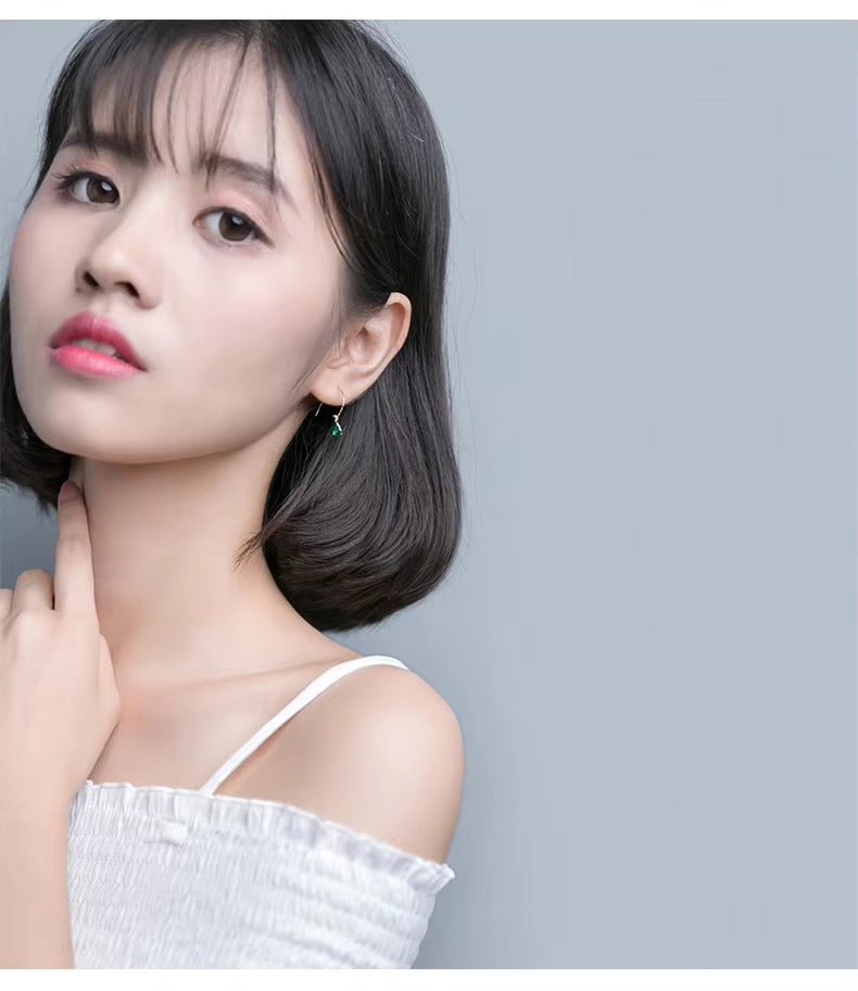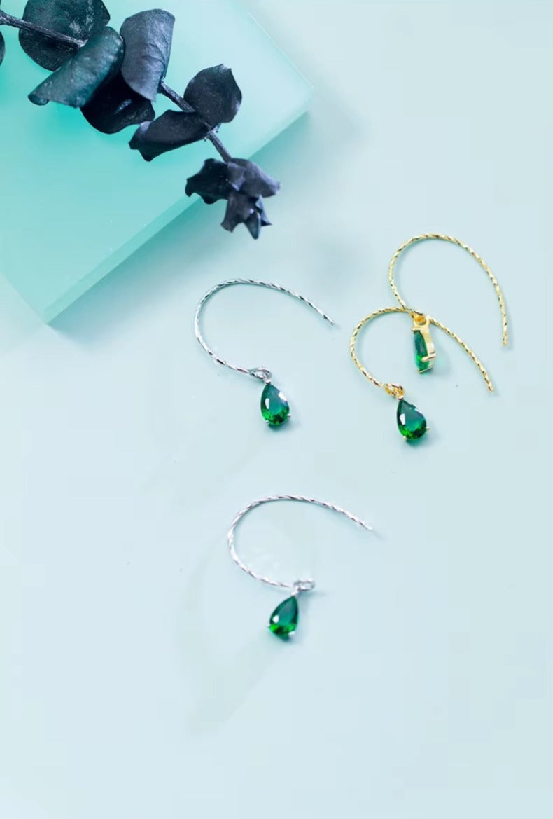 pendientes de gota de agua de cristal verde Simple para mujer, de plata de ley 100% 925