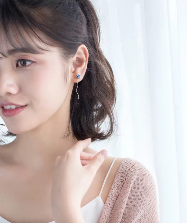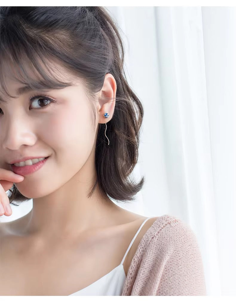 pendientes de gota de Planeta y Luna esmaltados para mujer, cadena larga de Plata de Ley 925