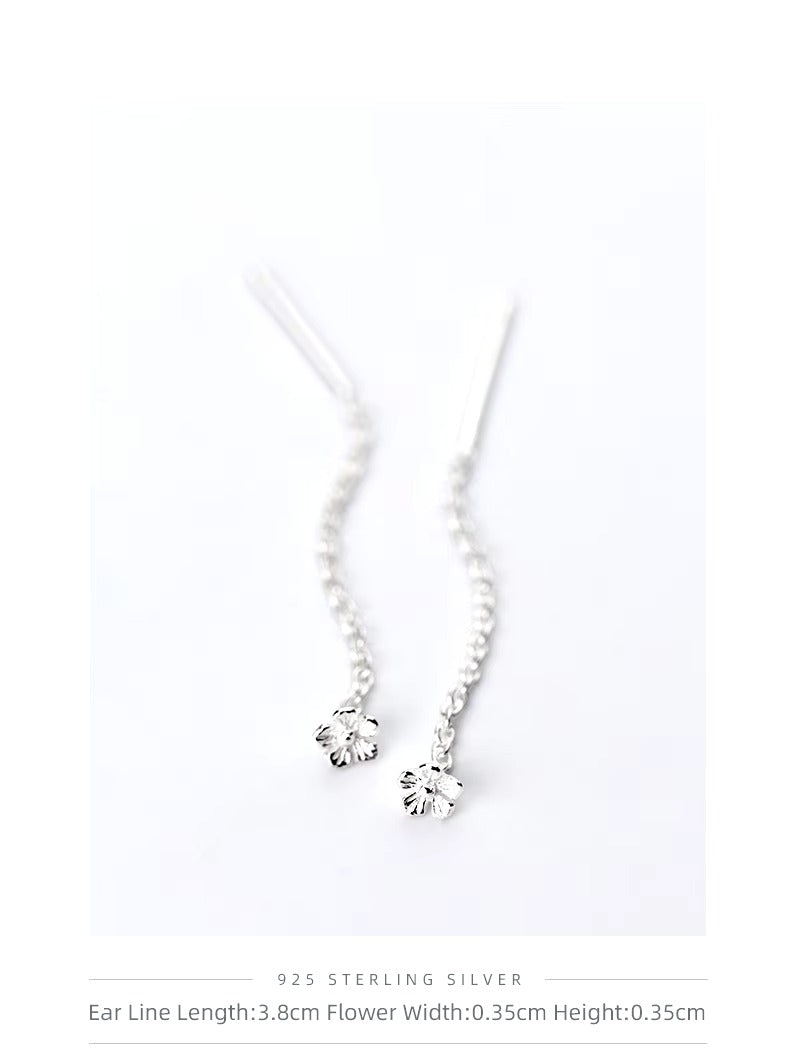 pendientes de plata de ley 100% con forma de flor para mujer, aretes largos, colgantes