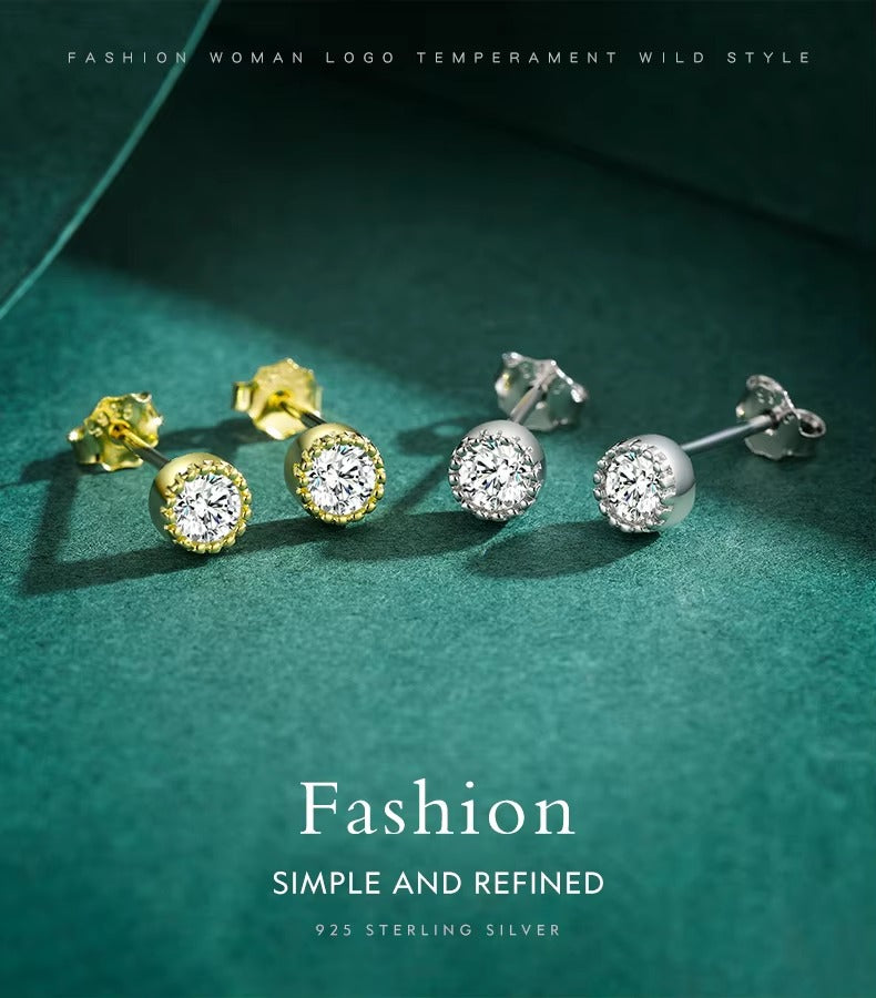pendientes de plata de ley 100% y Circonia cúbica para mujer, aretes pequeños y redondos