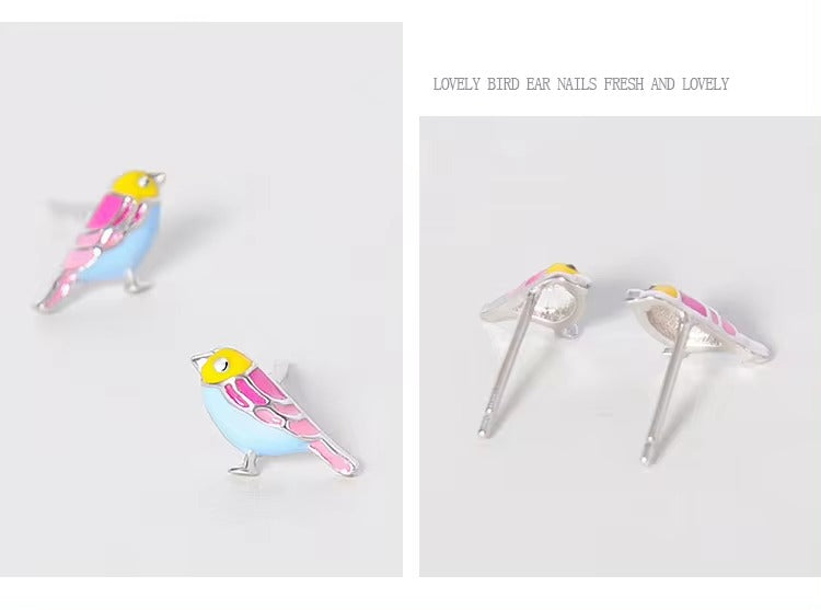 pendientes de plata de ley 925 con diseño de pájaro esmaltado