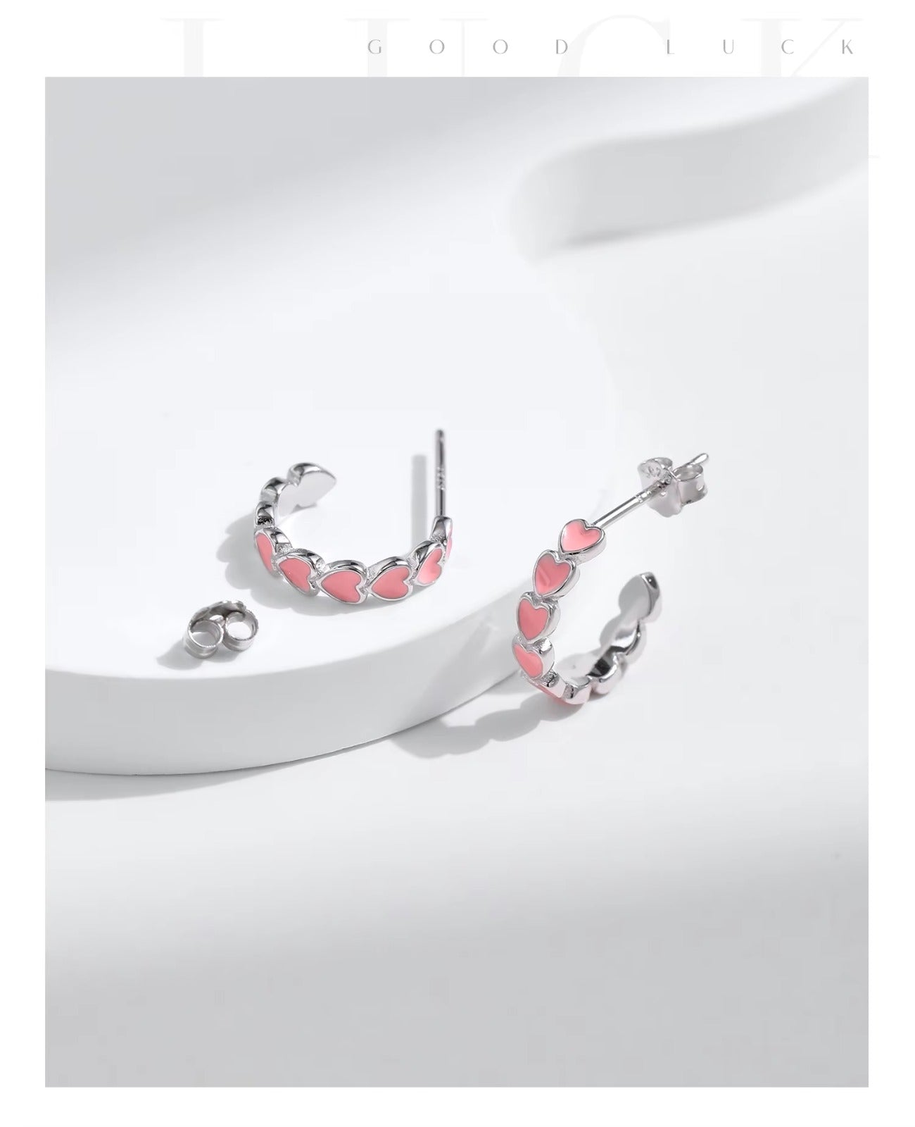 pendientes de plata de ley 925 con forma de C para mujer y niña