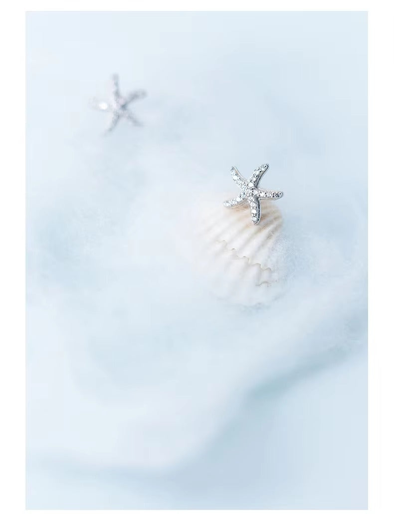 pendientes de plata de ley 925 con forma de estrella de mar, joyería fina con zirconia brillante, para mujeres