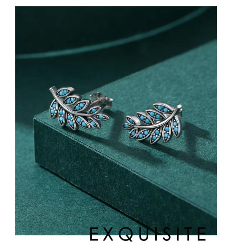 pendientes de plata de ley 925 con forma de hoja para mujer