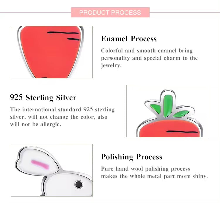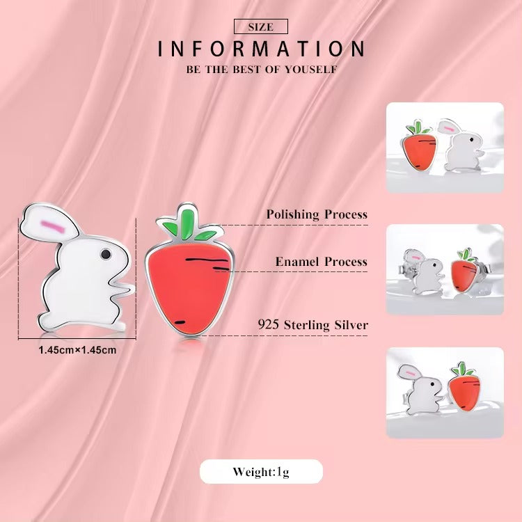 pendientes de plata de ley 925 con forma de zanahoria y conejo