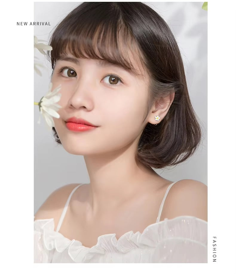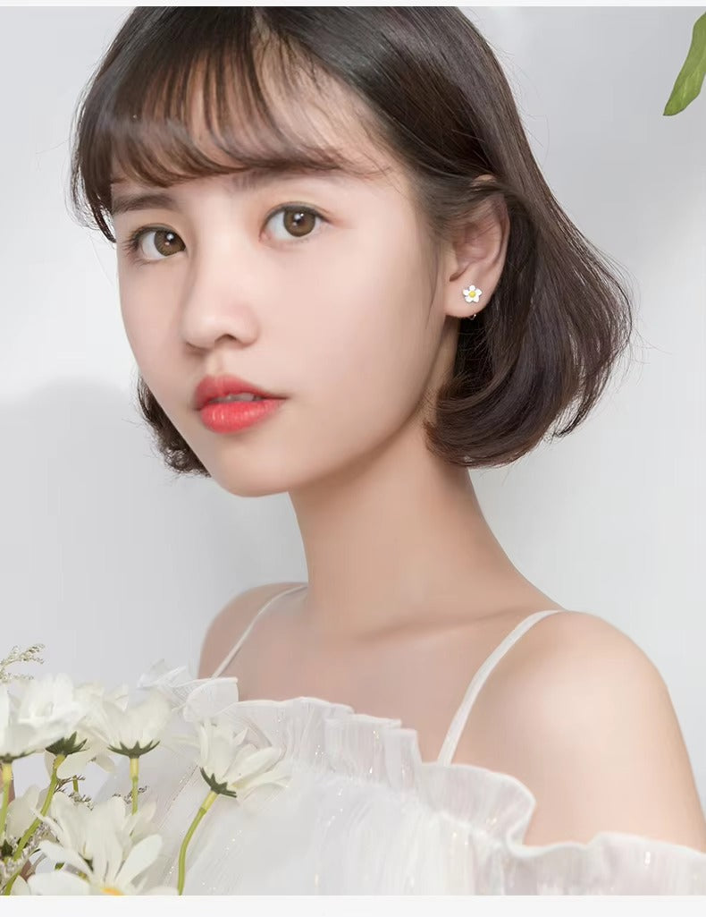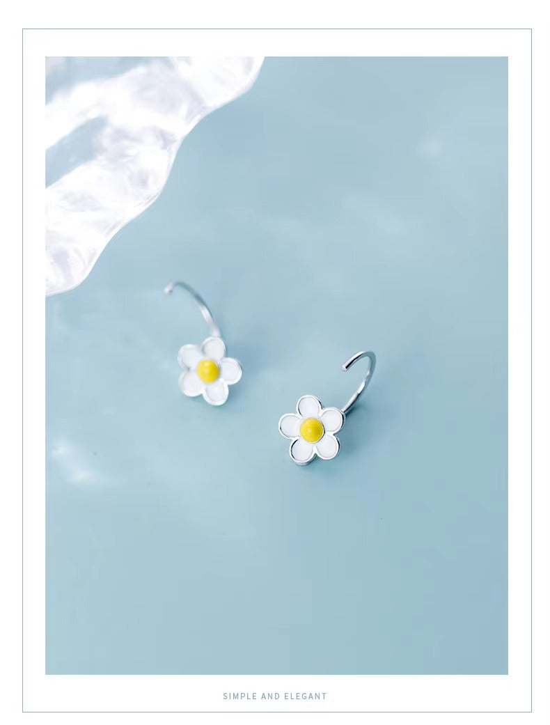 pendientes de plata de ley 925 para mujer, aretes de planta esmaltada, joyería fina, color blanco