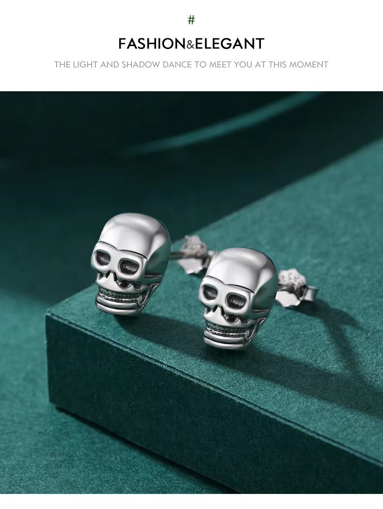 pendientes de plata de primera ley con forma de calavera para hombre y mujer, aretes pequeños