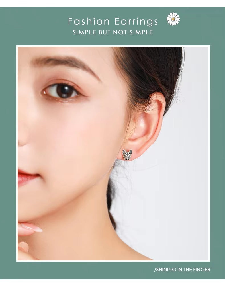 pendientes de plata de primera ley con forma de perro para mujer, aretes pequeño