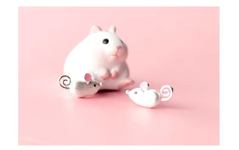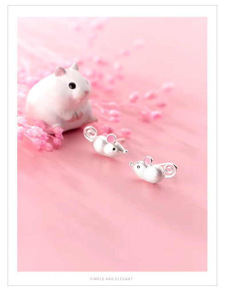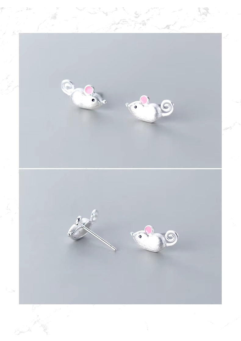 pendientes de plata de primera ley con forma de ratón para mujer, aretes pequeños